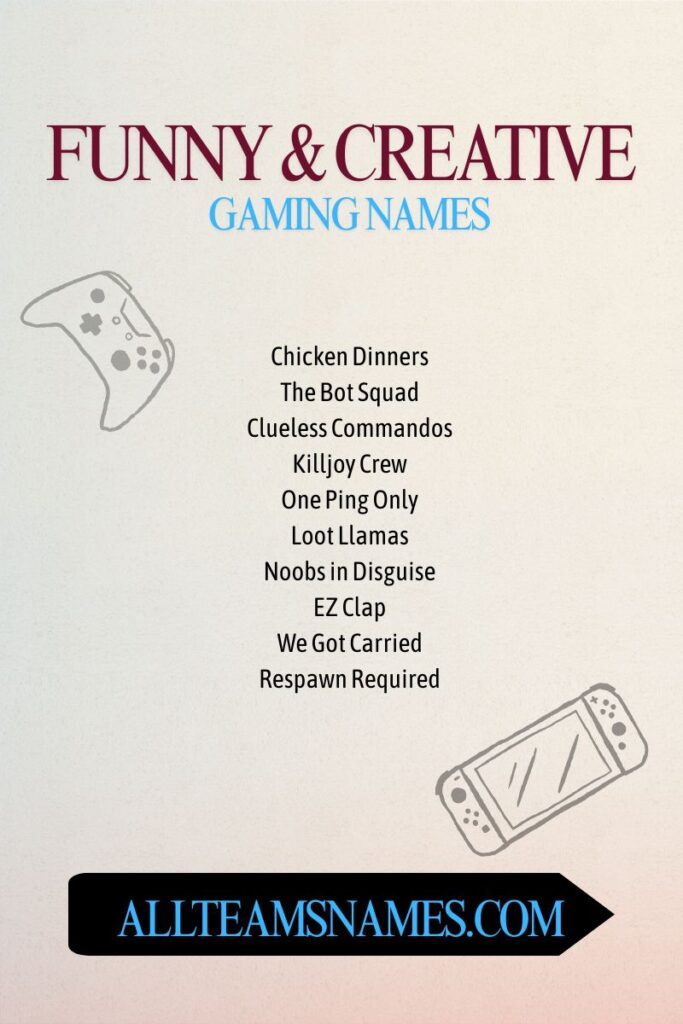 We pulled inspiration from top lists like Name Radiant’s “350 Best Gaming Names for Team and Solo Players”