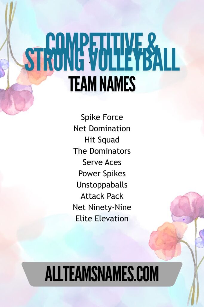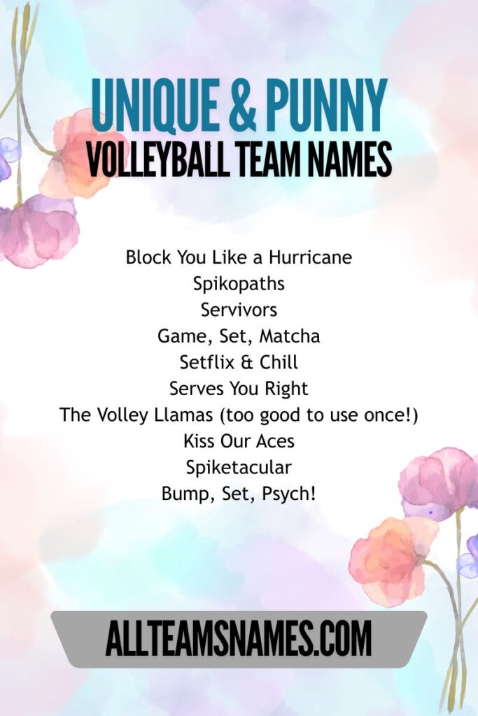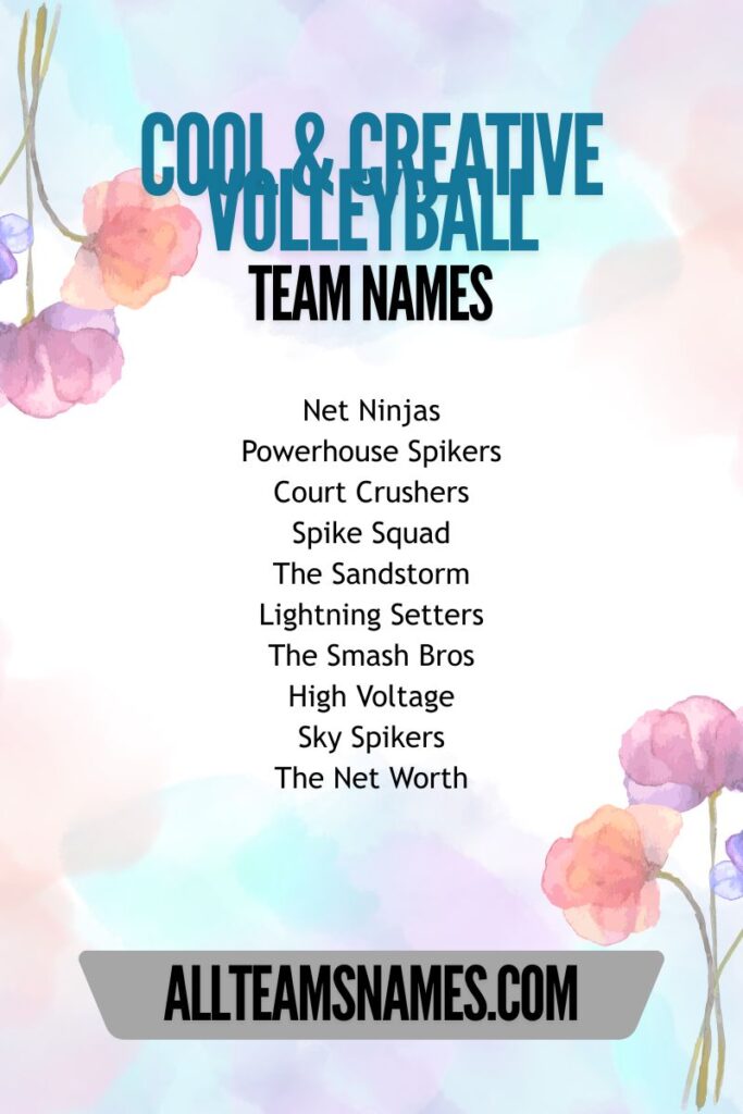 - How do I make my volleyball team name stand out? A creative name that’s easy to remember, unique, and fun can help your team stand out. Consider using wordplay, inside jokes, or something that highlights your team’s strengths or personalities.