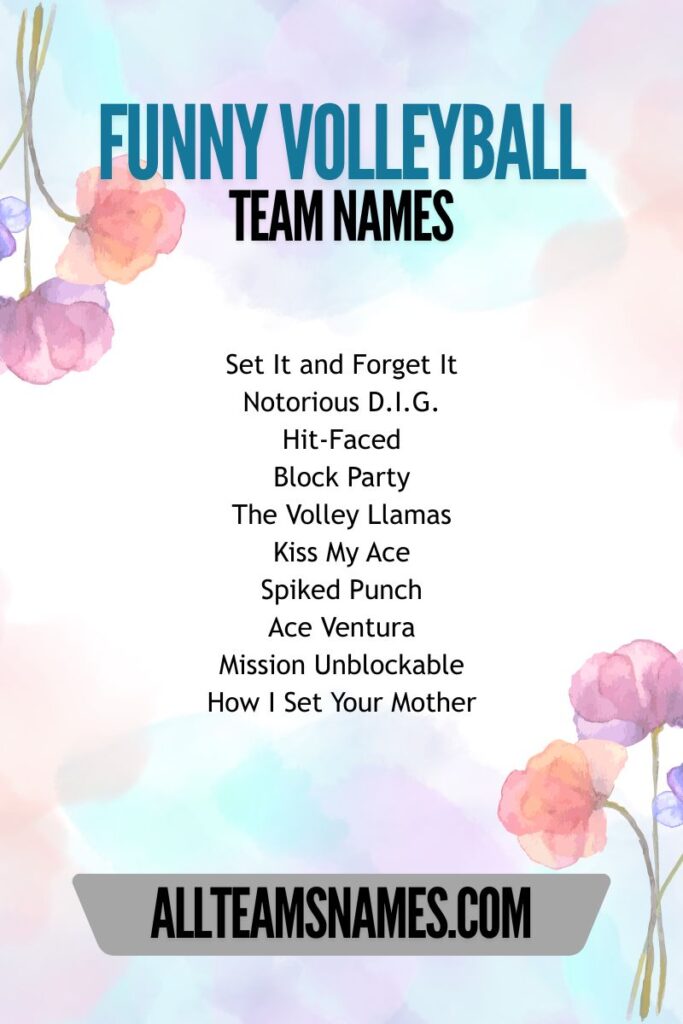 - What are some popular themes for volleyball team names? Popular themes include puns related to volleyball terms, references to pop culture, or names that highlight your team’s competitive spirit. Many teams also choose humorous or light-hearted names to keep things fun.